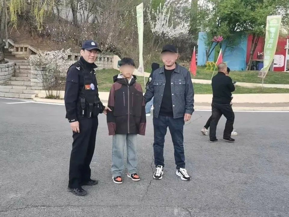民警带着孩子,沿着景区的道路,仔细地寻找着孩子父亲的身影,还不时向周围的游客和景区工作人员询问是否见过孩子描述的人。经过10多分钟的努力,终于成功找到了孩子父亲。原来,孩子父亲发现孩子不见后,也在焦急地四处寻找,正急得满头大汗。看到孩子安然无恙,孩子父亲激动不已,对民警连连道谢。