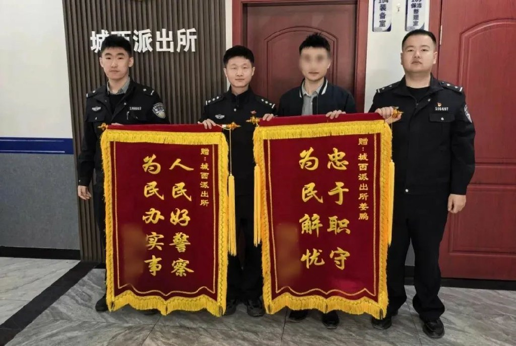 5月1日,市民王先生来到绿园分局城西派出所,将两面绣有“忠于职守 为民解忧”“人民好警察 为民办实事”的锦旗送到民警手中,对民警的耐心调解表达感谢。